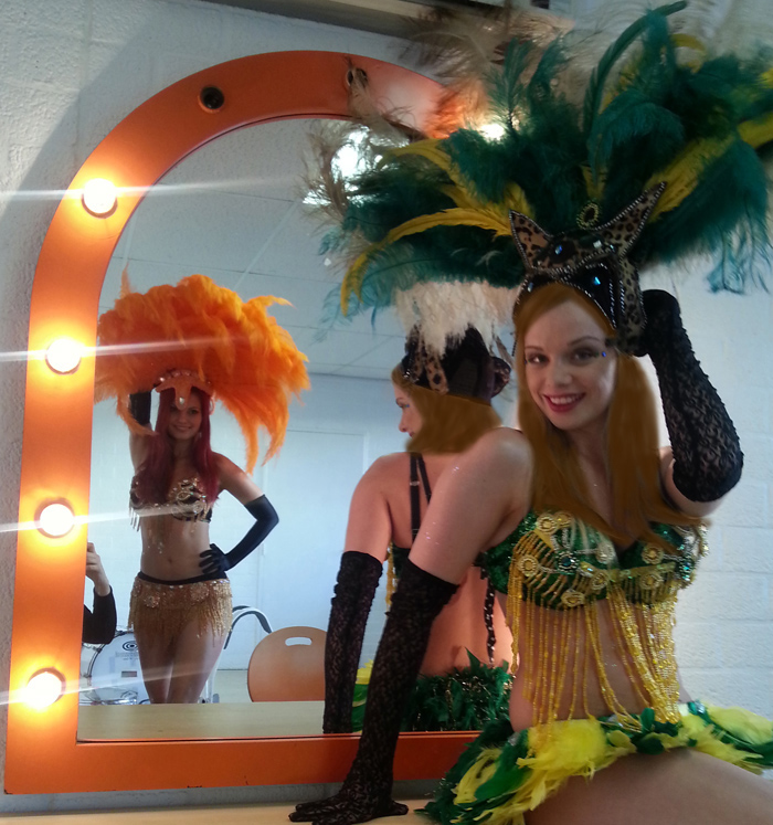Offerte Tropical themafeest 2 Al onze danseressen zijn jong en mooi en hebben een Caribische uitstraling. Onze kostuums zijn nooit te bloot, want ‘netjes' is het sleutelwoord voor onze shows – wel met de buik, maar niet met billen bloot. De klant kan zelf danseressen kiezen – onder voorbehoud van beschikbaarheid.